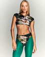 CONJUNTO DE BIKINI COM TOP TIPO CROPPED COM MANGAS CURTAS E CALCINHA COM CINTURA ALTA CAVADA.