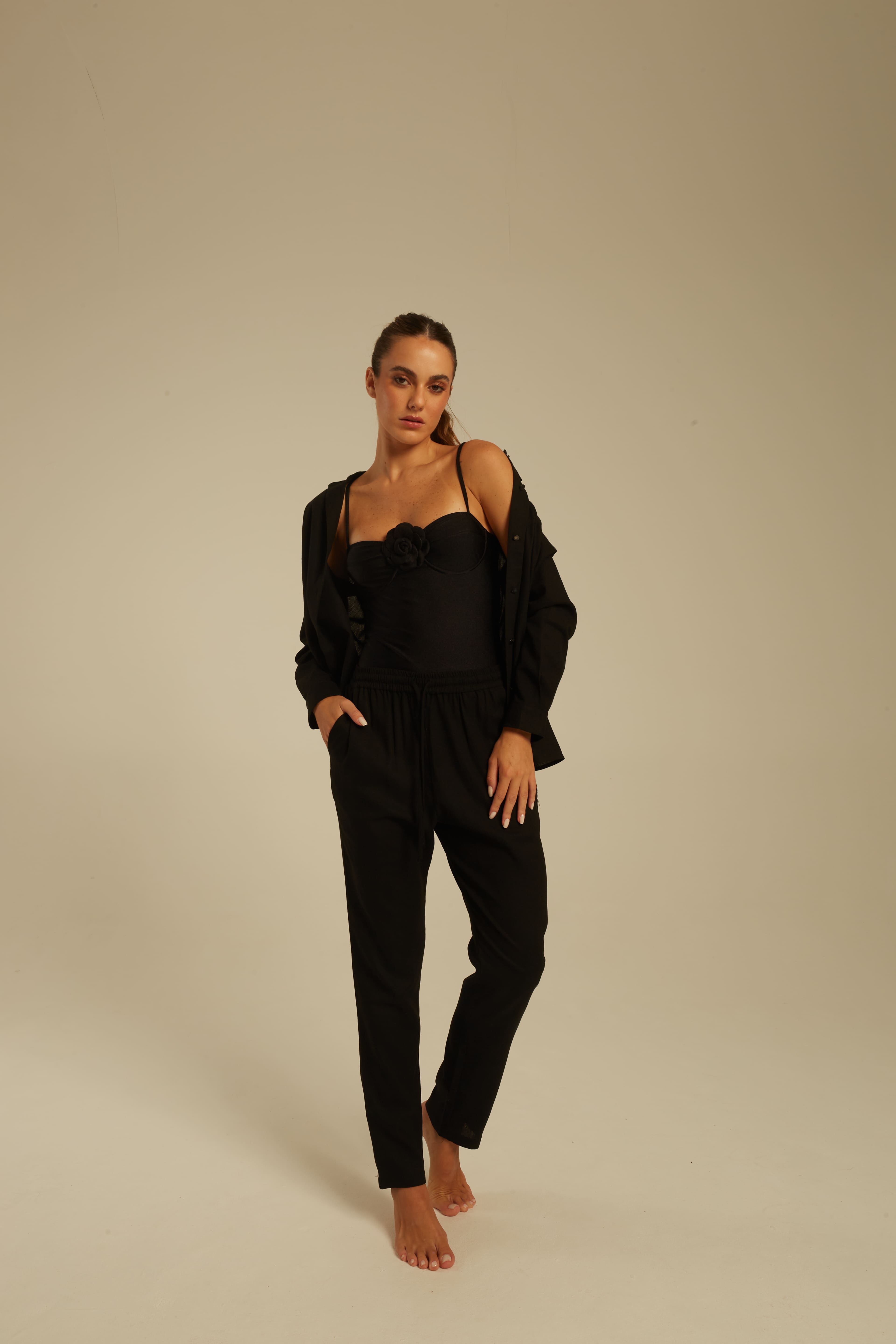 Composição: tecidos premium que podem incluir poliamida, elastano, viscose, algodão, linho, seda e outros materiais nobres, conforme cada modelo.