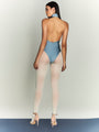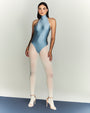 BODY COM GOLA ALTA, DECOTE NAS COSTAS COM FECHO NO PESCOÇO.