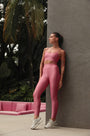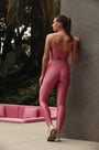 Top em tecido levemente brilhante, com alças ajustáveis e reforçadas, oferecendo sustentação ideal para treinos de alta intensidade. O acabamento canelado confere um toque moderno e sofisticado.
