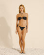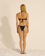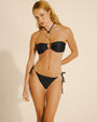Biquíni estilo Turim com três argolas presas por cordões ajustáveis e cordão amarrado no pescoço.