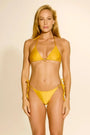 Com tom vibrante e solar, o Bikini Emily Caracol em amarelo é a peça que traduz energia e luminosidade. O detalhe em dourado no busto e nas laterais adiciona sofisticação, enquanto as amarrações laterais e no pescoço proporcionam ajuste ideal. Uma escolha versátil para destacar o bronzeado.