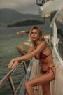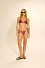 A calcinha de amarração lateral é ideal para quem busca praticidade e ajuste perfeito ao corpo, valorizando a silhueta de maneira sutil. Confeccionado em tecido com leve brilho, o conjunto é a escolha perfeita para acompanhar momentos à beira-mar ou em pool parties sofisticadas.