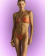 Bikini com calcinha cavada, top de alças finas frontais na estampa degradê amêndoa
