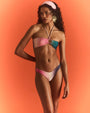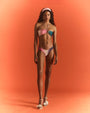 Bikini com calcinha cavada, top de alças finas frontais na estampa degradê azul e rosa