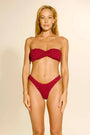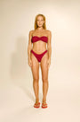O tom carmim intenso reforça o ar sofisticado e atemporal, tornando o modelo ideal para composições sofisticadas na praia ou piscina, além de funcionar como base para produções urbanas.