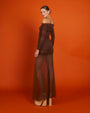 Blusa em tule com efeito drapeado, que combina leveza e elegância em uma modelagem contemporânea. Possui decote ombro a ombro e mangas longas ajustadas, criando um visual sofisticado que valoriza a silhueta com delicadeza.