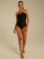 BODY COM DECOTE EM V FRANZIDO E ROLOTÊ PARA AMARRAÇÃO NO PESCOÇO E CINTURA