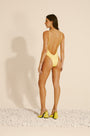 Body de alças, com cava e decotes profundos e tecido com textura.