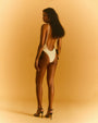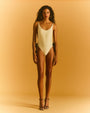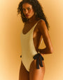 Body com alças, com cava profunda, decote nas costas e laços laterais removíveis