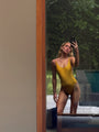 Body com decote arredondado discreto, enquanto as costas trazem um decote profundo e cavado. Alças finas e ajustáveis, proporcionando melhor encaixe e sustentação. O recorte das cavas laterais bem altas.