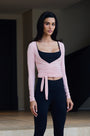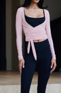 Casaqueto de manga longa confeccionada em Feita com tecido leve e de secagem rápida. Possui decote em V transpassado, modelagem ajustada ao corpo e faixa do próprio tecido para amarração na cintura, permitindo diferentes formas de uso e ajuste ao corpo. O recorte transpassado valoriza a silhueta e traz um ar feminino à peça. Ideal para compor looks mais elaborados ou para sobrepor peças básicas com charme e leveza.
