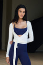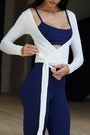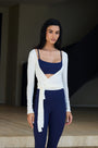 Casaqueto de manga longa confeccionada em malha leve com toque macio. Possui decote em V transpassado, modelagem ajustada ao corpo e faixa do próprio tecido para amarração na cintura, permitindo diferentes formas de uso e ajuste ao corpo. O recorte transpassado valoriza a silhueta e traz um ar feminino à peça. Ideal para compor looks mais elaborados ou para sobrepor peças básicas com charme e leveza.