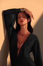 Saída de praia em tule duplo, de mangas longas e decote profundo