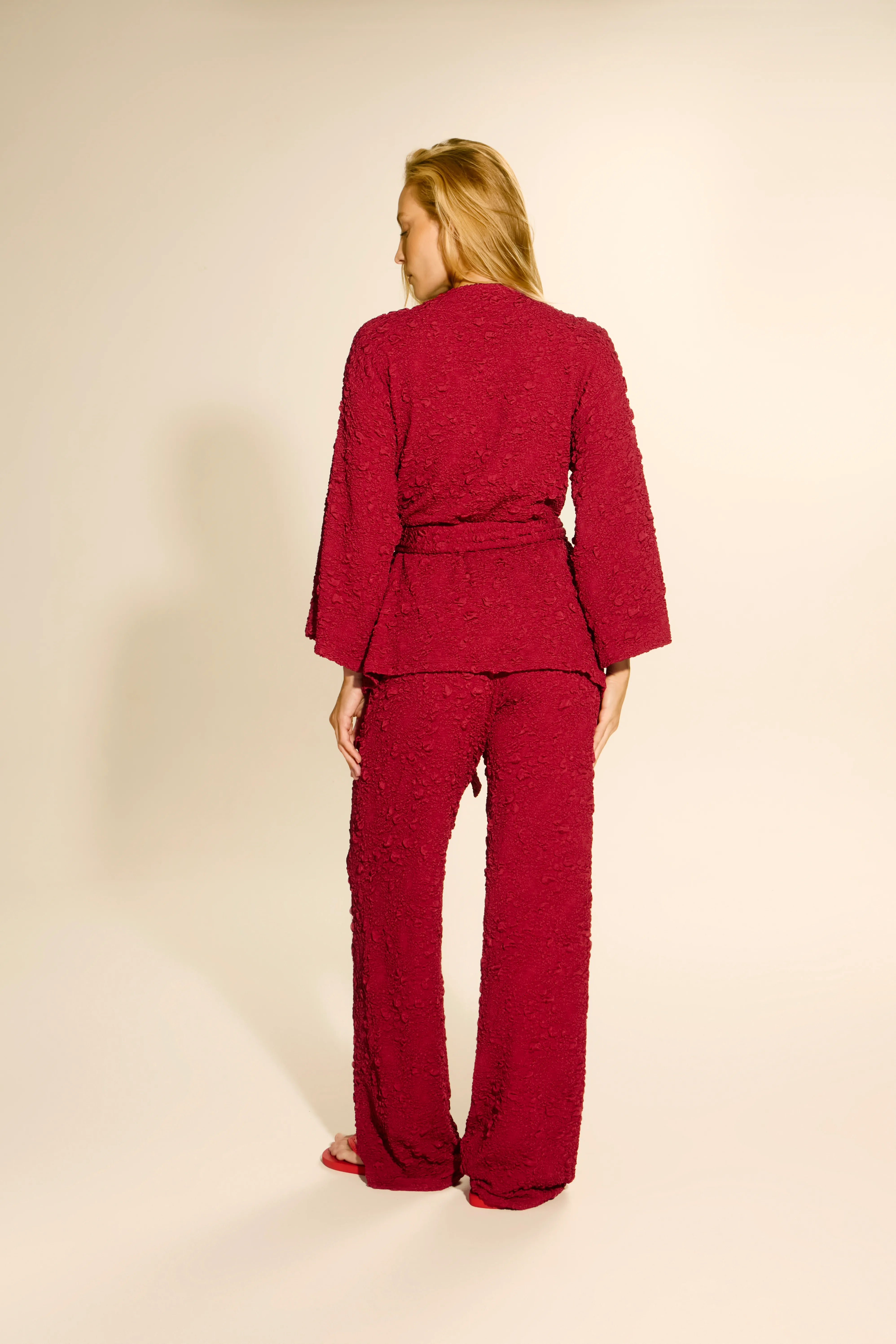 Casaco com modelagem estilo kimono, shape soltinho que traz conforto e movimento. Confeccionado em tecido texturizado com efeito em relevo.
