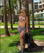 Pareô com transpasse em tule duplo comprimento midi e cobertura versátil para diferentes amarrações e estampa de poá