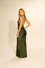 O tecido molda-se ao corpo valorizando a silhueta, enquanto o franzido lateral e a fenda discreta proporcionam movimento e um toque de sensualidade equilibrada.