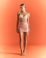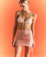 Saia curta com franzido e ajuste lateral
