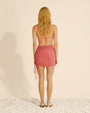 Saia curta com franzido e ajuste lateral