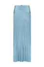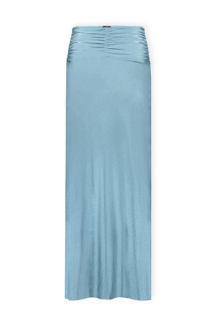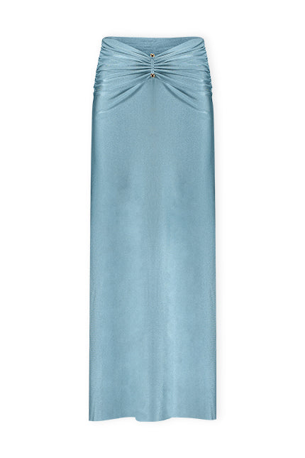 Saia com drapeado frontal, travetes e fenda lateral