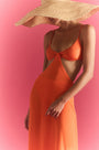 Vestido longo fluído com fendas laterais e top de bikini meia taça removível (ajuste por botão de pressão)