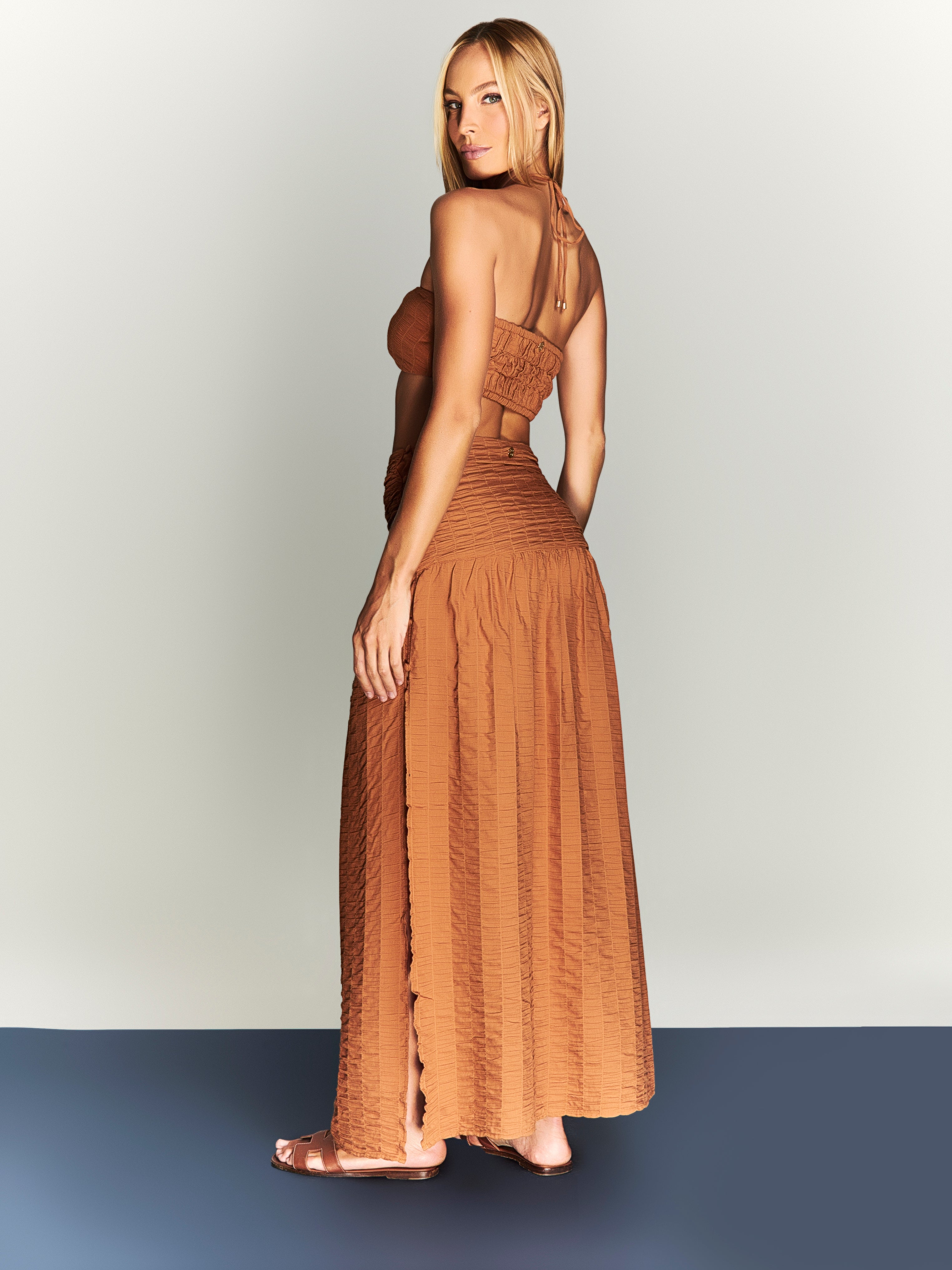 CONJUNTO FLUÍDO COM FENDA, FECHAMENTO E BOTÕES FORRADOS NAS LATERAIS