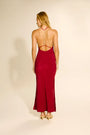 Vestido longo em malibu, que proporciona caimento elegante e sofisticado. Possui modelagem ajustada ao corpo, valorizando as curvas, com decote halter frontal e costas abertas que trazem sensualidade e leveza ao visual.