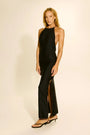 Vestido longo em lycra brilho que proporciona um caimento sofisticado e confortável. Possui modelagem ajustada ao corpo, valorizando as curvas, com fendas laterais que acrescentam movimento e sensualidade.