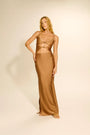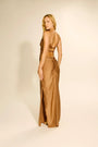 Vestido longo em lycra, com brilho sutil e toque sedoso que traduz elegância e modernidade.