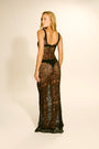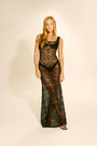 Vestido longo em tela, confeccionado em tela com trama ampla e irregular, que cria um efeito orgânico e moderno. Possui modelagem reta, alongada e fluida, com decote arredondado frontal e posterior, além de alças largas que oferecem conforto e sustentação.